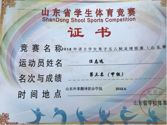 6月7日至13日,由中国大学生体育协会、山东省学校体育协会主办的2018中国大学生男子五人制足球联赛(山东赛区)在山东外事翻译职业学院成功举办。beat365中文官方网站派出了普通生运动队和高水平运动队两支队伍参加了甲组和丙组的比赛。