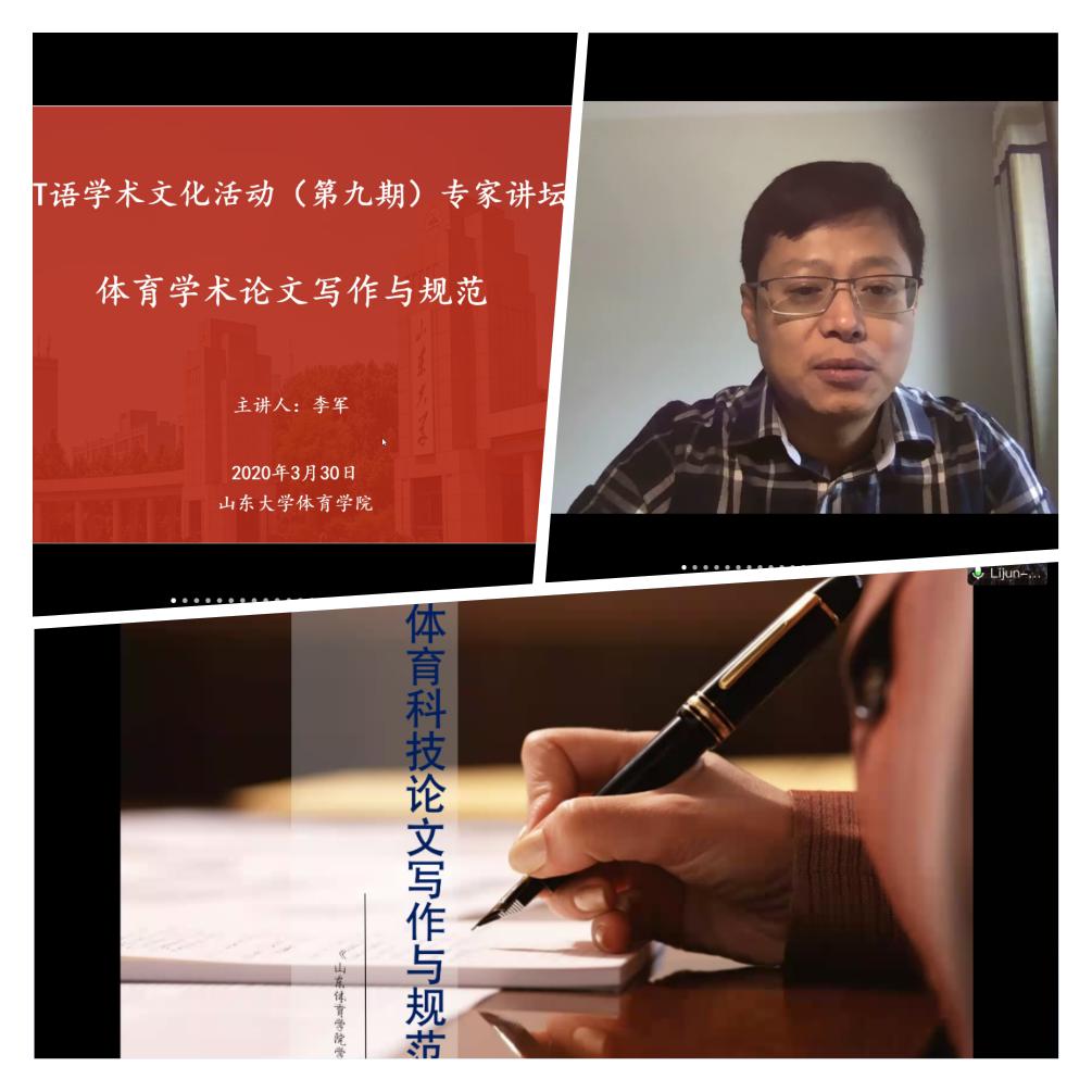 3月30日,beat365中文官方网站通过腾讯会议APP平台举办第九期T语学术文化活动—学术讲坛。本次学术论坛邀请了原《天津beat365中文官方网站学报》主编李军教授为学院师生作了主题为“体育科技论文写作与规范”的报告,讲坛由beat365中文官方网站副院长石振国教授主持。