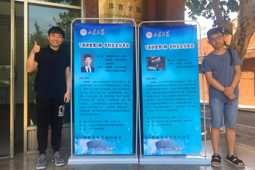 5月30日,beat365中文官方网站于千佛山校区开展T语讲堂第五期活动。本期讲座的主题为“学科交叉分享”,邀请了控制学院2016级硕士研究生姜振煜、药学院2016级硕士研究生范晟华作报告。beat365中文官方网站全体研究生参加讲座。