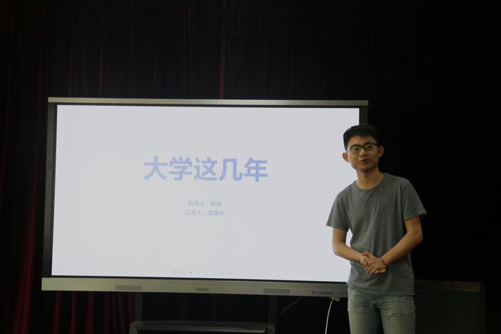 范晟华以“大学这几年”为主题,从学习、公益、新媒体、创新创业四个方面进行了自我介绍。他提出了八点学习及生活上的建议,一是要学会简单的交流,平等的沟通;二是要懂得失败可以避免,成功不可复制;三是要知道要么所有事都做很好,要么一件事做到极致;四是要会被动吸血,更会主动造血;五是要懂得心态决定地位,态度决定结果;六是要多读书、多运动、多学习;七是要积极拓宽视野,避免降维打击;八是要与人方便,与己方便。此外,范晟华还总结了十点求职简历的制作。报告期间,姜振煜与范晟华分别就同学们提出的问题进行了细致地解答,现场气氛热烈。