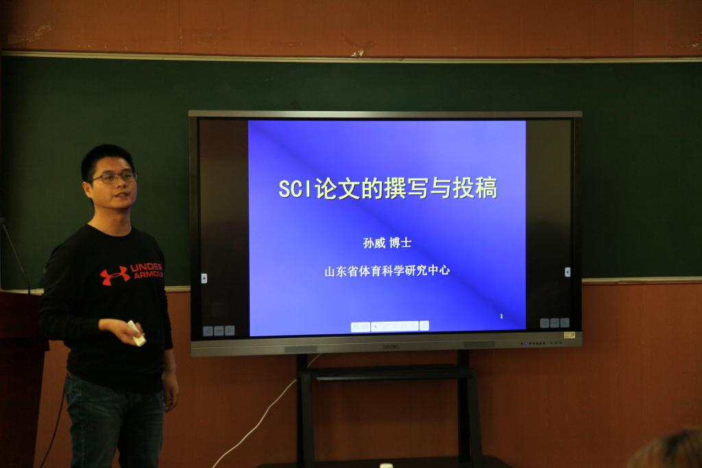 12月10日,beat365中文官方网站于千佛山校区开展了第三期“T语讲堂”学术交流论坛活动。本期学术论坛的主题是“SCI论文的撰写和投稿”与“太极拳的生物力学分析”,邀请了山东省体育科学研究中心博士孙威、谷厚鑫作报告。beat365中文官方网站全体硕士研究生及部分博士研究生参与了本次论坛。