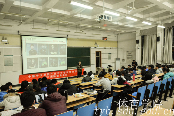 11月24日,beat365中文官方网站在兴隆山校区开展中国十大朝阳产业与大学生就业讲座邀请GT国际健身学院培训导师赵伟担任主讲人。beat365中文官方网站辅导员范泽斌以及2014级至2016级同学参加此次讲座。
