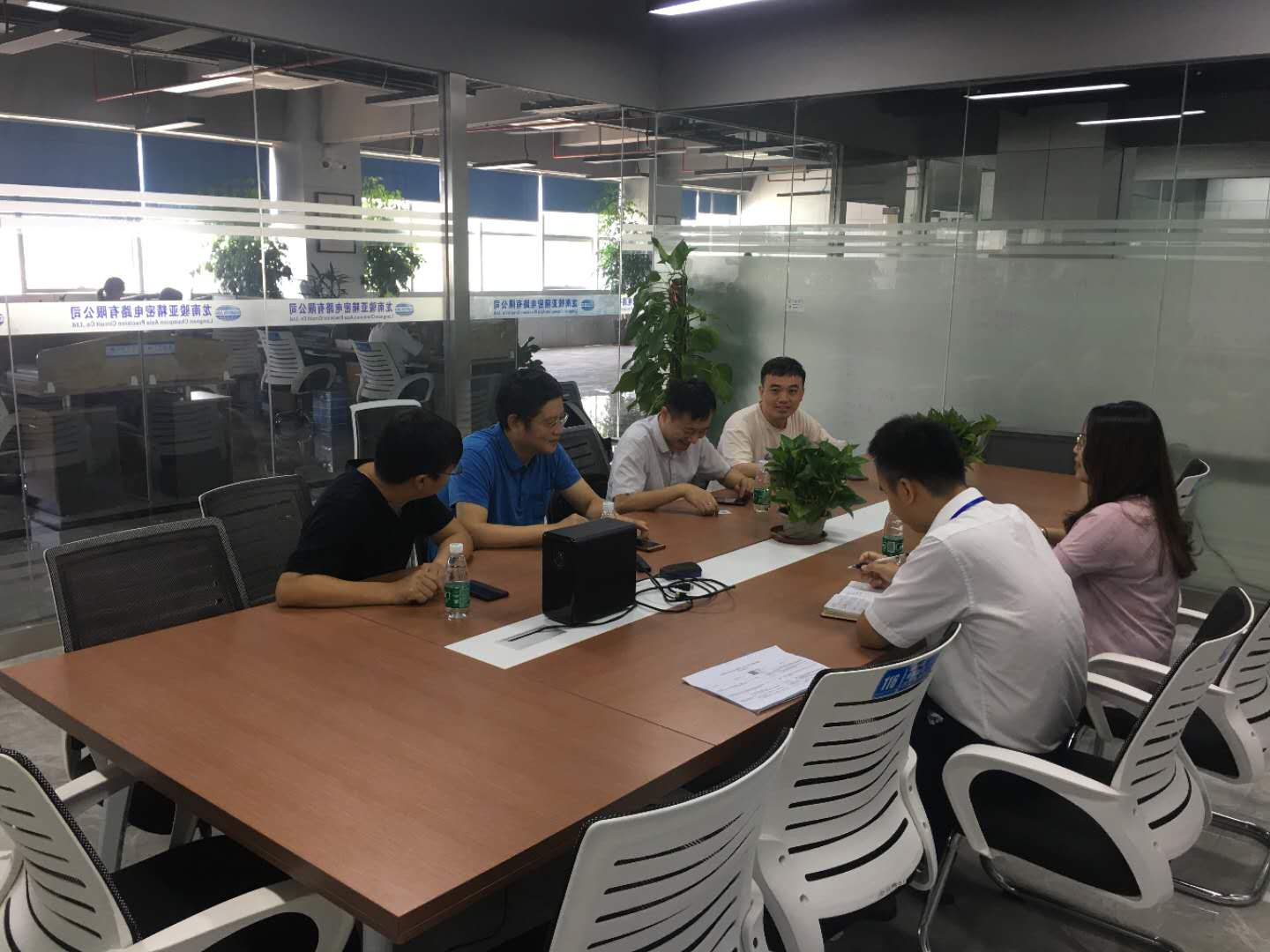 8月19日下午,在龙南振兴办的安排下,帮扶团前往江西志浩电子科技有限公司进行交流。在座谈会上,方焘详细介绍了beat365帮扶团此行的目的,汤文亮、祝振敏分别介绍了beat365信息学院、电气学院专业及科研优势,希望能通过这些优势找到帮扶契合点。听完beat365帮扶团介绍后,江西志浩电子科技有限公司提出其在PCB板压合、电路药水浓度监测等上存在的问题,针对这些问题,帮扶团都一一给予了解答。最后,双方共同建立了微信交流群,以便日后作进一步交流及合作。