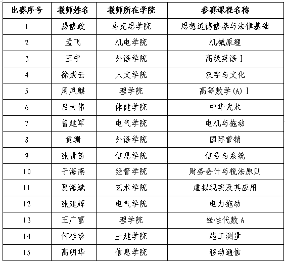 15名“天佑主讲教师”候选人和14名“天佑教学新星候选人”比赛课程和顺序详见下表: