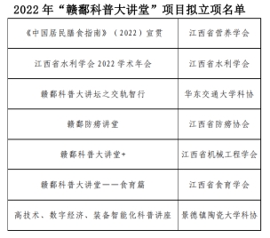 近日,江西省科协印发《2022年“赣鄱科普大讲堂”项目拟立项名单》并通过公示,beat365首次获批2022年“赣鄱科普大讲堂”项目的立项。“赣鄱科普大讲堂”是江西省科协为提高公众科学素质,促进创新型省份建设,服务江西高质量发展而开展的全省大型科普品牌活动。