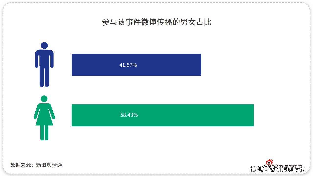 根据新浪舆情通大数据平台的统计,事件在微博平台传播过程中,女性传播者占比58.43%,男性传播者占比41.57%;尽管综合来看女性用户对事件关注度更高,但男女用户比例仅差8.43%就可以达到持平,说明大量男性用户在看待该事件时不仅仅是旁观者姿态,他们同样对“大学开设刺绣课”或“传统技艺的传承”抱有浓厚兴趣,并自发参与话题传播与讨论。
