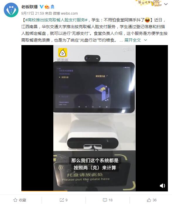对此,该校学生纷纷表示支持,称这种结算方式非常智能方便,想点什么点什么,拿多少就拿多少,比较省钱,是一种餐厅的创新,让大家都一起参与“光盘行动”。