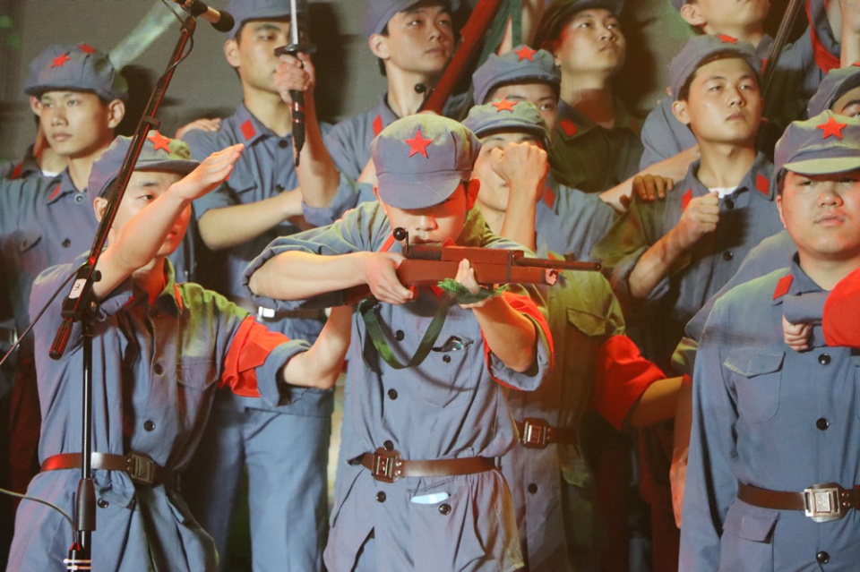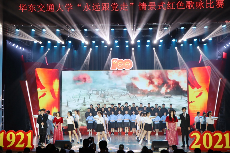 情景式红色歌咏比赛由日出东方、星火燎原、新的纪元、改革开放、民族复兴、百年梦想6个篇章、17个主题组成。各学院学生通过红色走读、红色家书、表演唱、小组唱、情景剧等多种表现方式,串联起一堂生动的党史大课,深情演绎红歌背后的党史故事。