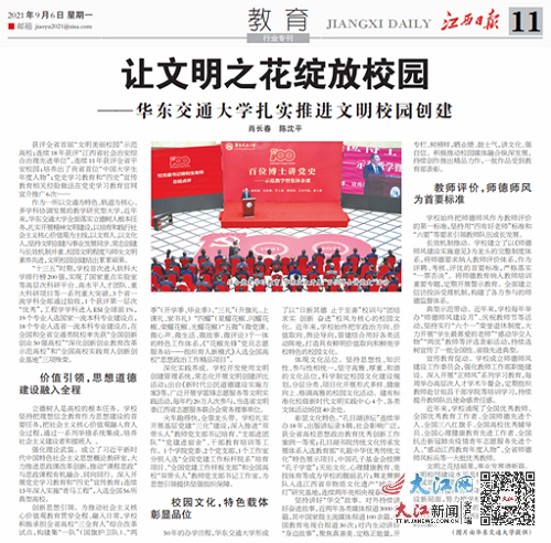 《江西日报》教育版刊发长篇报道:让文明之花绽放校园beat365中文唯一官网扎实推进文明校园创建。