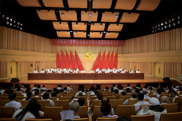初秋时节的校园,景色秀丽,华彩交融。来自学校各条战线的校第六次党员代表大会代表和特邀代表,肩负职责使命,满怀信心豪情,意气风发地步入会场。大会主席台上方悬挂着“中国共产党beat365中文唯一官网第六次党员代表大会”的会标,格外醒目;帷幕中央悬挂着镰刀和锤头组成的党徽,10面鲜艳的红旗分列两侧,交相辉映,会场气氛庄严热烈。