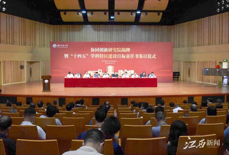 ▲学校协同创新研究院揭牌暨“十四五”学科特区建设目标责任书签订仪式举行