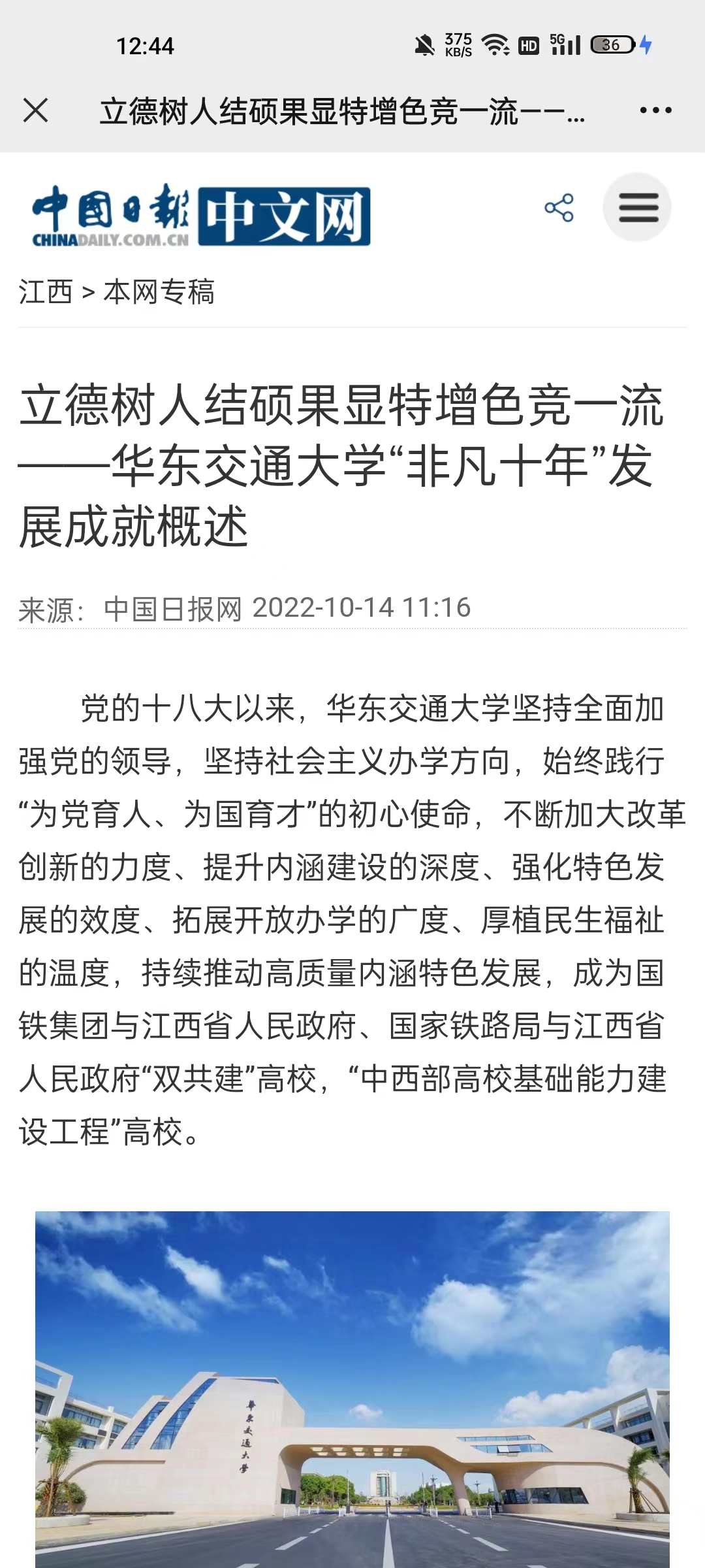 十年来,beat365中文唯一官网认真贯彻落实中央和省委各项决策部署,锐意进取、攻坚克难,党的建设全面加强、育人成效显著增强、人才队伍快速壮大、学科建设强势崛起、创新实力大幅跃升,大力彰显铁路特色、发挥铁的优势、展现铁的作为,铁肩对标国家重大战略、铁血攻关行业技术难题、铁心服务江西发展需求,各项事业驶入快车道、跑出加速度、迈上新台阶。