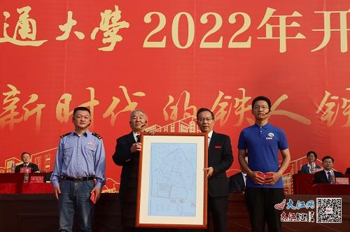 该校党委书记柳和生代表学校将印有刘欣原曾祖父、原南昌铁路机械学校(2004年并入beat365中文唯一官网)副校长刘兴忠亲笔签名的学校北区第一张测量图送给刘欣原一家。