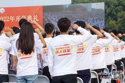 新生佩戴校徽宣誓仪式上,全体新生整装肃立,郑重地将校徽佩戴至左胸前,戴上这枚徽章,就接过了“铁”的接力棒,有了斩不断的“铁”之印记和磨不灭的“铁”之使命,开启了“铁”的新征程。“遵循‘日新其德、止于至善’的校训,争做新时代铁人铁军,力做有理想、敢担当、能吃苦、肯奋斗的新时代华交青年......”新生右手握拳,铮铮誓言激发着奋进的力量。