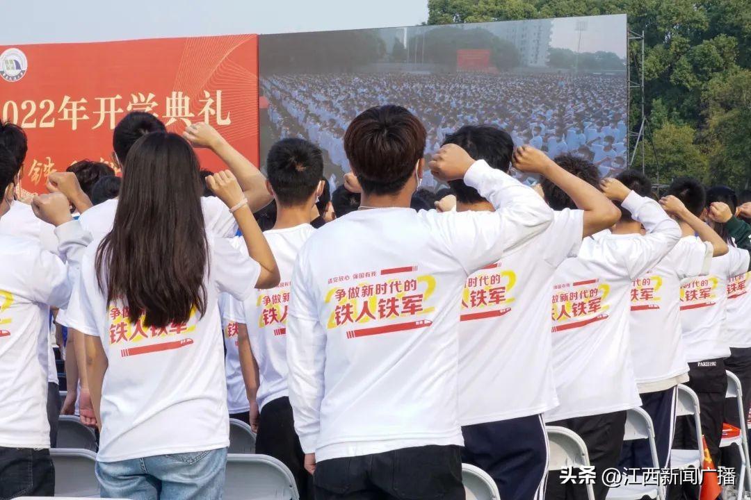 新生佩戴校徽宣誓仪式上,全体新生整装肃立,郑重地将校徽佩戴至左胸前。“遵循‘日新其德、止于至善’的校训,争做新时代铁人铁军,力做有理想、敢担当、能吃苦、肯奋斗的新时代华交青年......”新生右手握拳,铮铮誓言激发着奋进的力量。