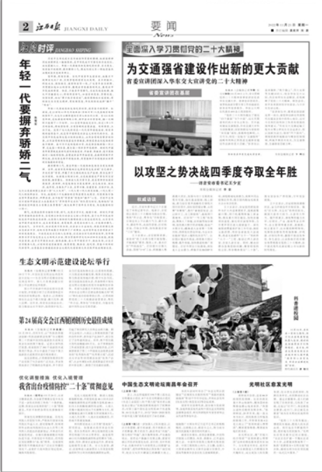 “宣讲报告中,着重说到创新是第一动力,要坚持创新在我国现代化建设全局中的核心地位,这对今后我们的科研工作具有很强的指导意义。”华东交大交通运输工程专业博士研究生左志远表示,将以创新为动力,坚持“四个面向”,围绕铁路环境振动与噪音控制领域,积极开展技术攻关,为交通强国、交通强省贡献力量。