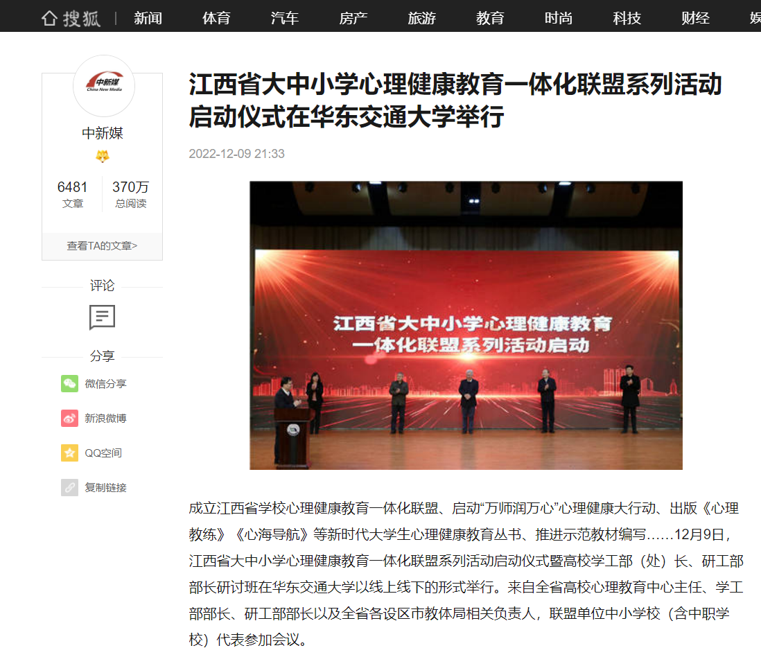成立江西省学校心理健康教育一体化联盟、启动“万师润万心”心理健康大行动、出版《心理教练》《心海导航》等新时代大学生心理健康教育丛书、推进示范教材编写……12月9日,江西省大中小学心理健康教育一体化联盟系列活动启动仪式暨高校学工部(处)长、研工部部长研讨班在beat365中文唯一官网以线上线下的形式举行。来自全省高校心理教育中心主任、学工部部长、研工部部长以及全省各设区市教体局相关负责人,联盟单位中小学校(含中职学校)代表参加会议。