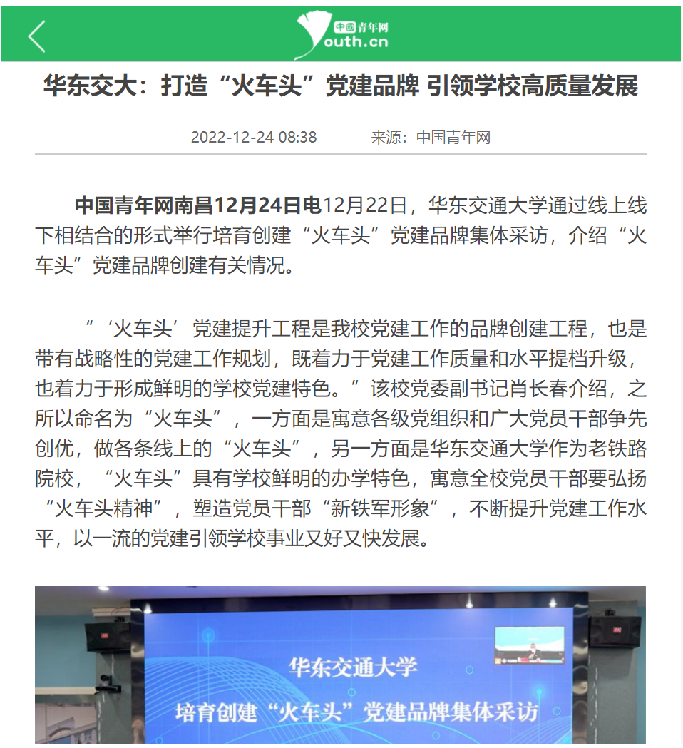 围绕“火车头”党建品牌创建目标,该校不断推进党建工作与业务工作相融合。在学生培养方面,持续推进“党建+思政课堂”“党建+第二课堂”“党建+第三课堂”,培育思想“红”、塑造意志“铁”、涵养气质“和”的新铁人铁军;在研究生教育方面,以研究生理论宣讲团为重要基础,打造一支信仰坚定、素质优良、守正创新、引领力强的骨干队伍,做好“双创”遴选培育,申报全国高校“百个研究生样板党支部”和“百名研究生党员标兵”创建工作,在课程教学、学术科研以及社会实践上赓续红色基因,加强政治引领;在党支部建设方面,以提升组织力为重点,深化基层党建“三化”建设,对标教育党员、管理党员、监督党员、组织师生、宣传师生、凝聚师生、服务师生“七个有力”的创建目标,形成一套有效工作体系、打造一个思政育人项目、攻克一些事业发展难题、创建一项特色党建精品、推出一批党员先进典型,把党支部建设成为基层战斗堡垒。