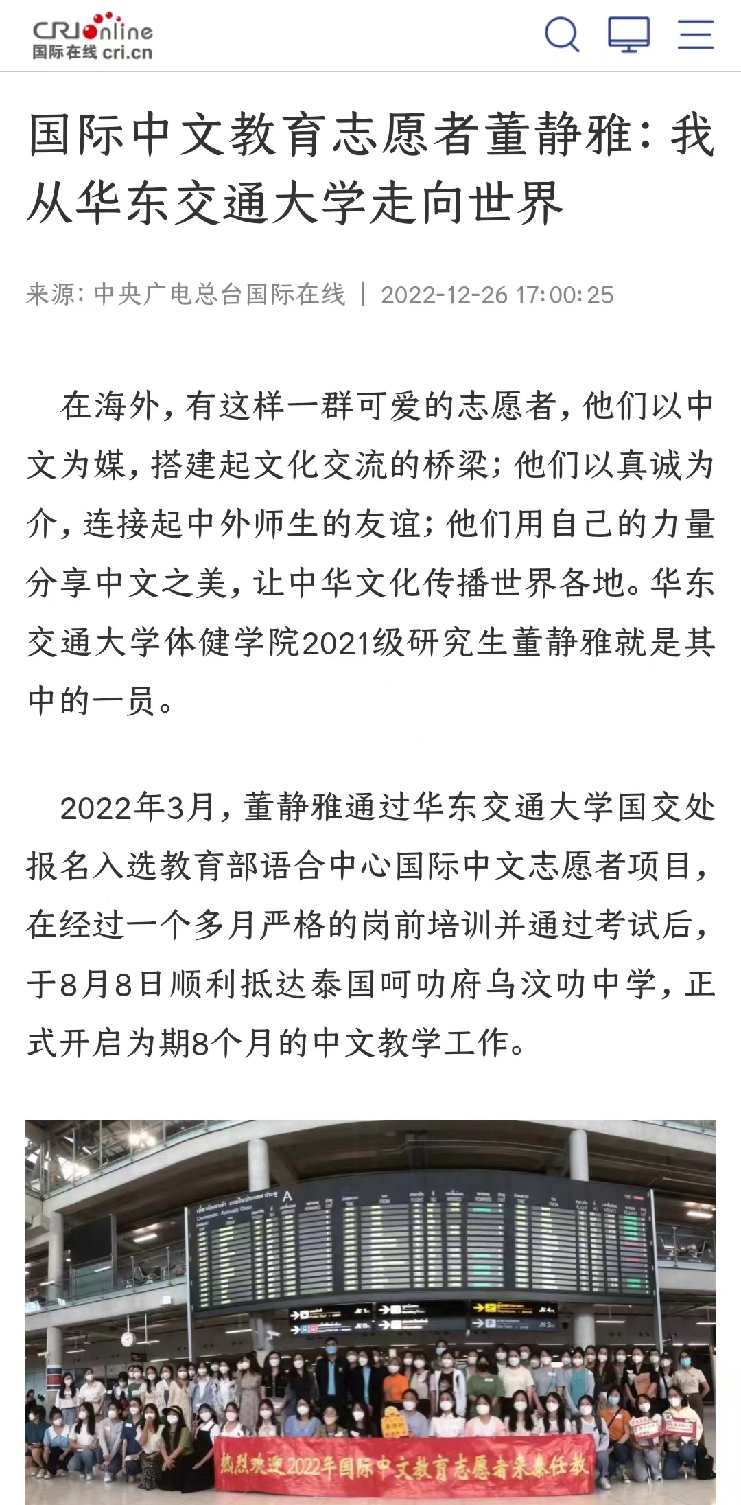 教育部语合中心国际中文志愿者赴泰国任教