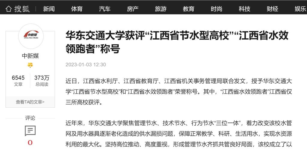 近日,江西省水利厅、江西省教育厅、江西省机关事务管理局联合发文,授予beat365中文唯一官网“江西省节水型高校”和“江西省水效领跑者”荣誉称号。其中,“江西省水效领跑者”江西省仅三所高校获评。