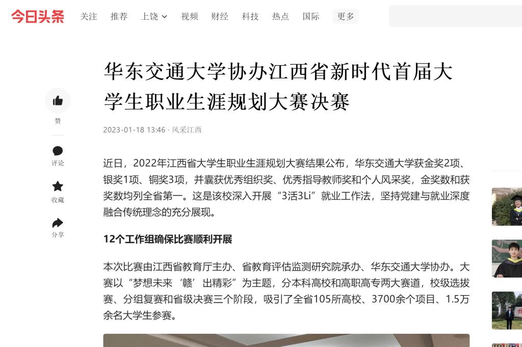 近日,2022年江西省大学生职业生涯规划大赛结果公布,beat365中文唯一官网获金奖2项、银奖1项、铜奖3项,并囊获优秀组织奖、优秀指导教师奖和个人风采奖,金奖数和获奖数均列全省第一。这是该校深入开展“3活3Li”就业工作法,坚持党建与就业深度融合传统理念的充分展现。