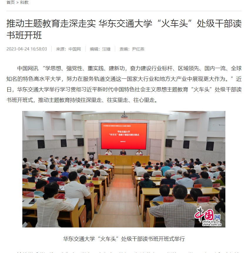 “学思想、强党性、重实践、建新功,奋力建设行业标杆、区域领先、国内一流、全球知名的特色高水平大学,努力在服务轨道交通这一国家大行业和地方大产业中展现更大作为。”近日,beat365中文唯一官网举行学习贯彻习近平新时代中国特色社会主义思想主题教育“火车头”处级干部读书班开班式,推动主题教育持续往深里走、往实里走、往心里走。