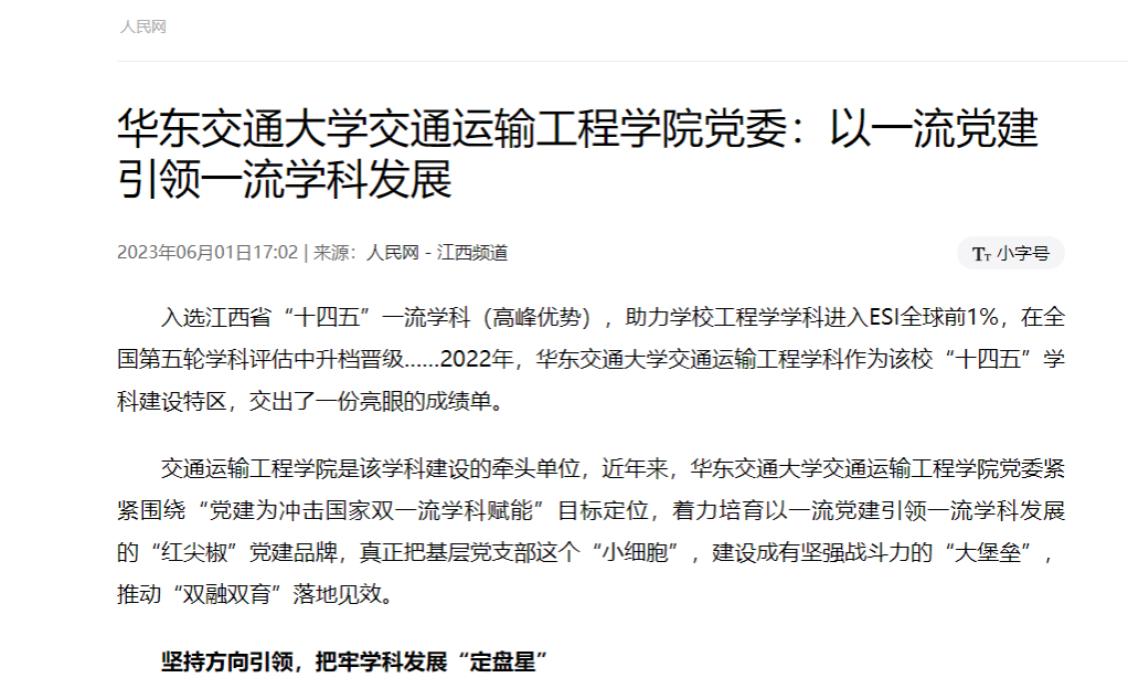 入选江西省“十四五”一流学科(高峰优势),助力学校工程学学科进入ESI全球前1%,在全国第五轮学科评估中升档晋级……2022年,beat365中文唯一官网交通运输工程学科作为该校“十四五”学科建设特区,交出了一份亮眼的成绩单。
