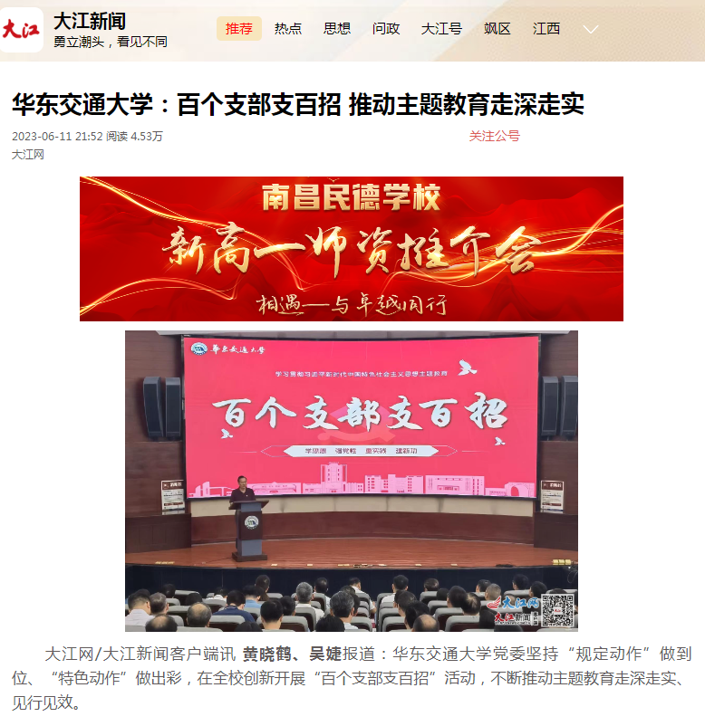 下真功夫,推动发展支硬招。“双百”“支招”,贵在实招管用、落地见效。首批40个教工党支部强化问题导向、坚持守正创新,形成问题清单40个,提出支招举措116条,推动落实举措42条,不断将调研成果转化为破解难题的新招妙招、改进工作的实招硬招。聚焦江西所需,土建学院岩土道路工程教工党支部充分发挥人才智力优势,与萍乡绕城高速公路项目党支部共建博士团创新工作室,共同打造人才培养、科技攻关、科普教育、教学示范基地,服务交通强省建设;聚焦学校所急,国际学院教工党支部精准对标综合考核的短板弱项,制定“七个一”任务清单,逐项攻坚突破,切实提高国际交流合作水平;聚焦师生所盼,华交产业集团直属党支部创新推出“智慧华交小铁”综合服务平台,全力打造校园智慧生活圈,让师生享受更加精细、多元、智能的提品增质服务。