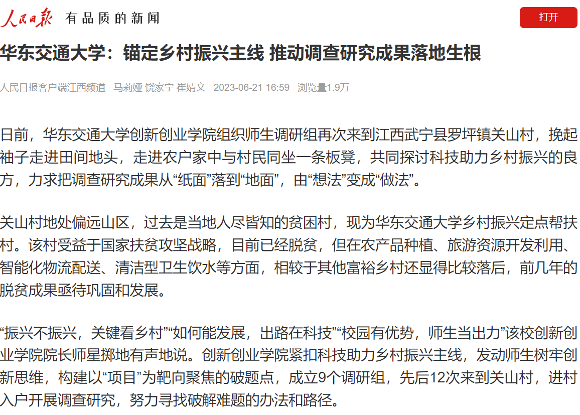“振兴不振兴,关键看乡村”“如何能发展,出路在科技”“校园有优势,师生当出力”该校创新创业学院院长师星掷地有声地说。创新创业学院紧扣科技助力乡村振兴主线,发动师生树牢创新思维,构建以“项目”为靶向聚焦的破题点,成立9个调研组,先后12次来到关山村,进村入户开展调查研究,努力寻找破解难题的办法和路径。