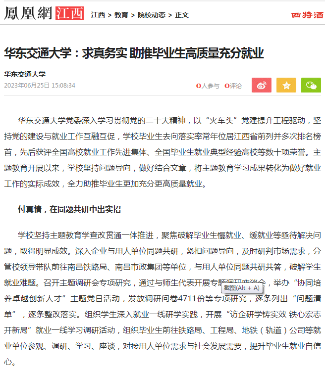 就业是最大的民生。主题教育开展以来,学校进一步完善了提高效率、促进发展的就业工作举措,推动了一批服务学生就业能力提升的对策与行动。下一步,华东交大将继续推进主题教育与就业工作同频共振、一体推进,全力推动毕业生高质量充分就业。
