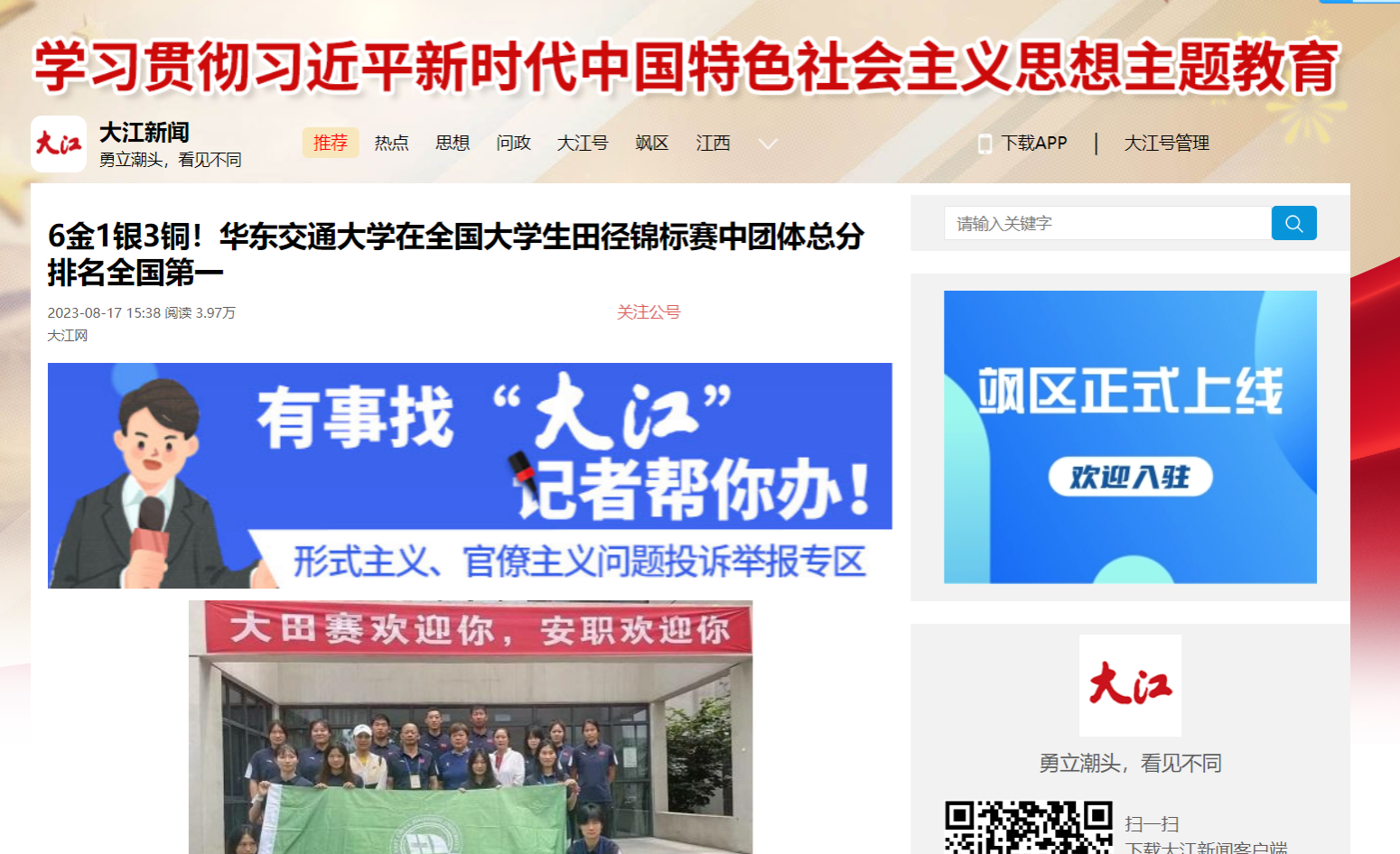 大江网/大江新闻客户端讯 第21届全国大学生田径锦标赛(简称“大田赛”)自8月10日开赛以来,经过6天紧张激烈的角逐,beat365中文唯一官网“火车头”田径队不畏强手、奋勇拼搏,一举斩获6金1银3铜的佳绩,夺得丙组丁组(高水平组、超级组)团体总分第一名、女子团体总分第一名,并荣获体育道德风尚奖。金牌数、团体总分均实现历史性突破,取得了学校自1997年首次组队参加大田赛以来的最好成绩。