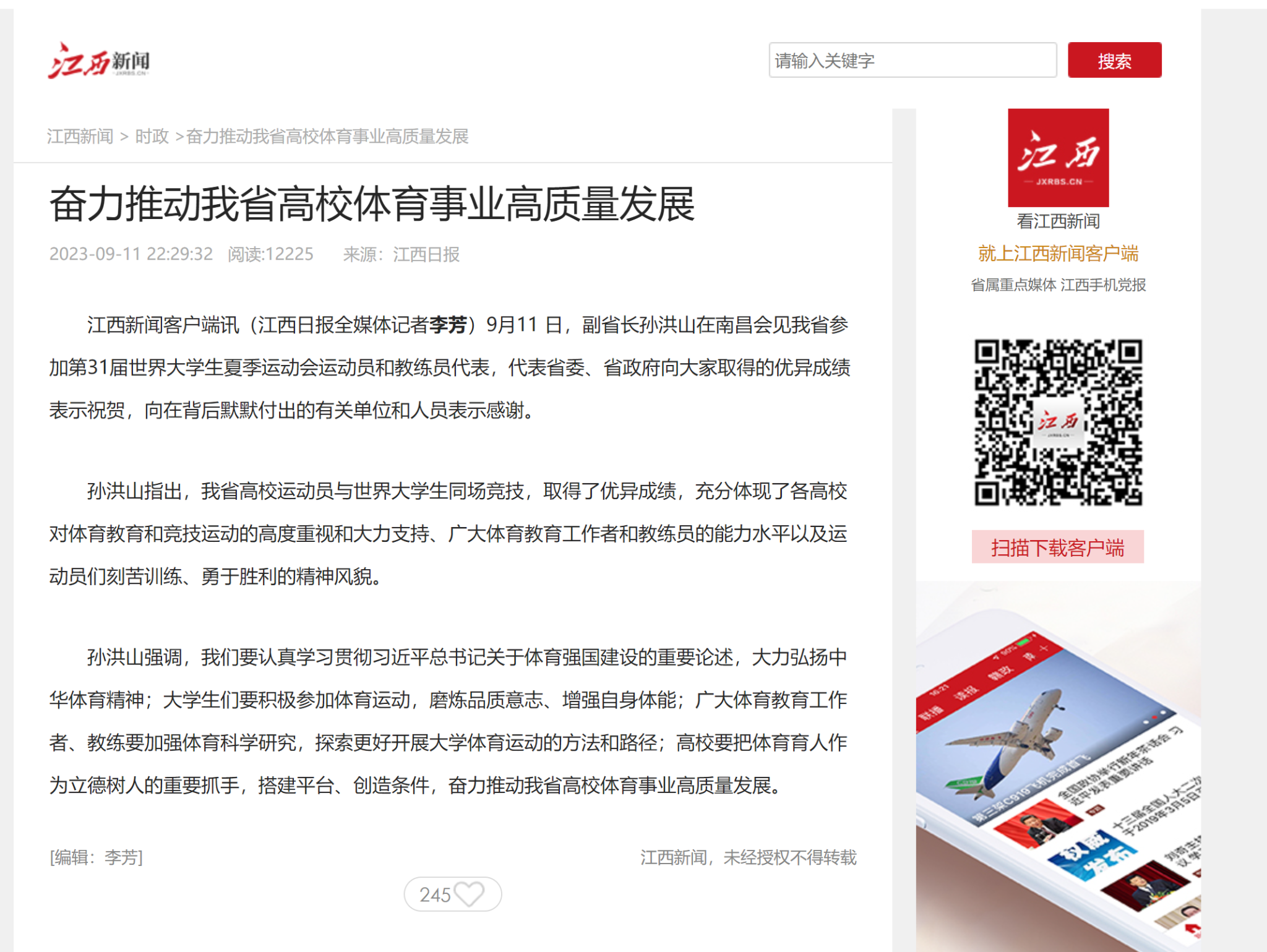 链接:奋力推动我省高校体育事业高质量发展 江西新闻_最权威的江西主流媒体 (jxxw.com.cn)