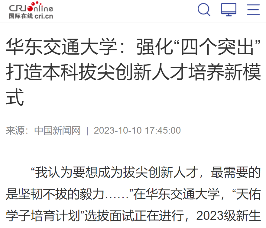 此外,学校不断推进产教融合、教科结合,将拔尖创新人才培养纳入学校与国家铁路集团、国家铁路局“双共建”项目,建立与机关部门、科研院所、行业企业协同育人机制,通过聘请行业技术人才、杰出校友等担任客座教授,以及选派学生赴单位学习锻炼、课程实践等做法,扩大对外交流合作,汇聚育人合力,确保人才培养与行业未来发展需求相适应。