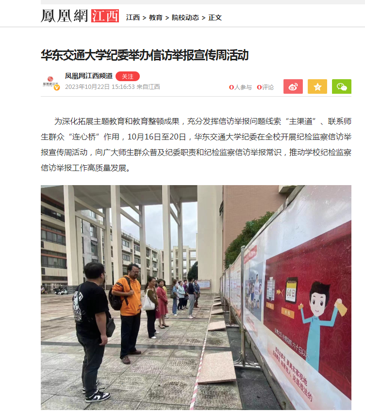 该校纪委主要负责人表示,此次信访举报宣传周旨在以师生群众喜闻乐见的宣传形式,引导师生有序正确举报,合理合法反映个人诉求,着力从源头上提升学校纪检监察信访举报质量。