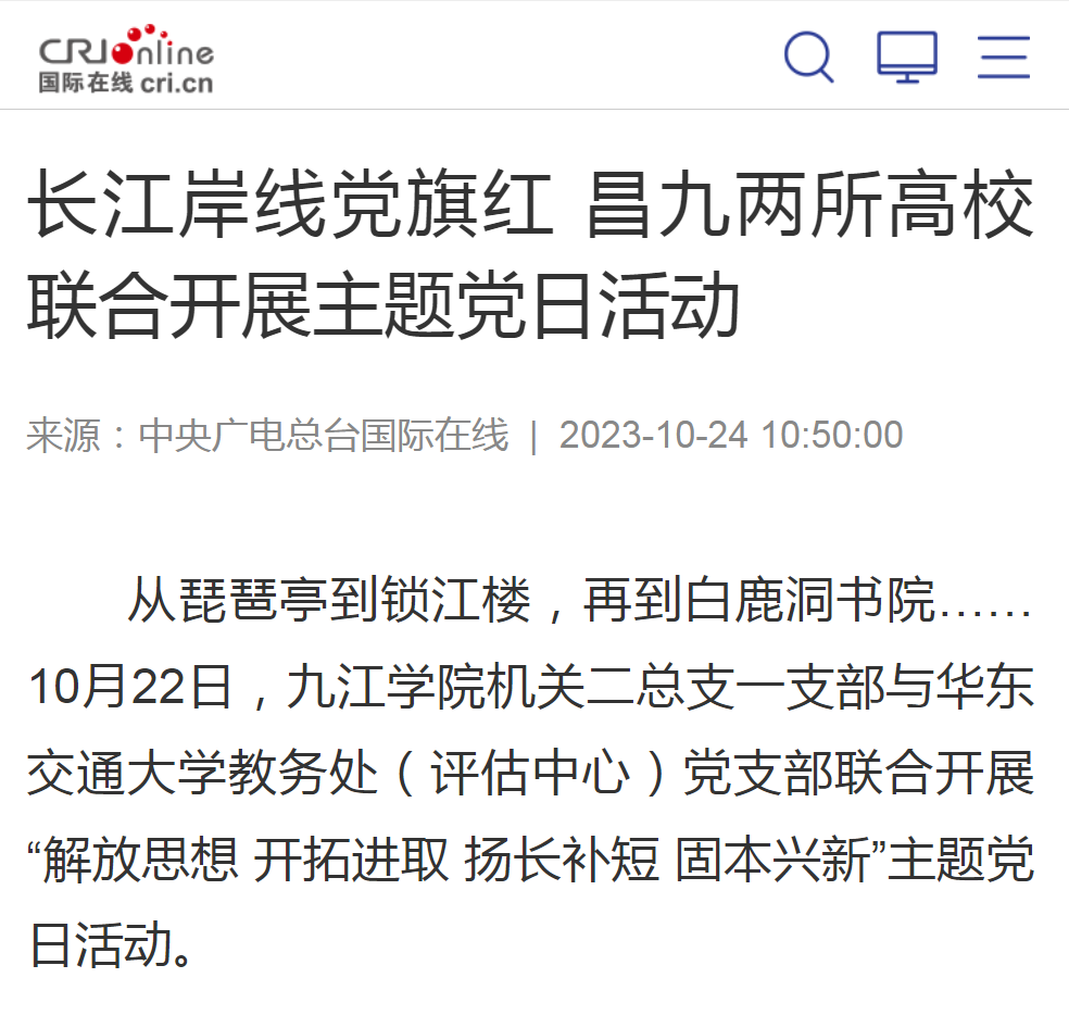 从琵琶亭到锁江楼,再到白鹿洞书院……10月22日,九江学院机关二总支一支部与beat365中文唯一官网教务处(评估中心)党支部联合开展“解放思想 开拓进取 扬长补短 固本兴新”主题党日活动。
