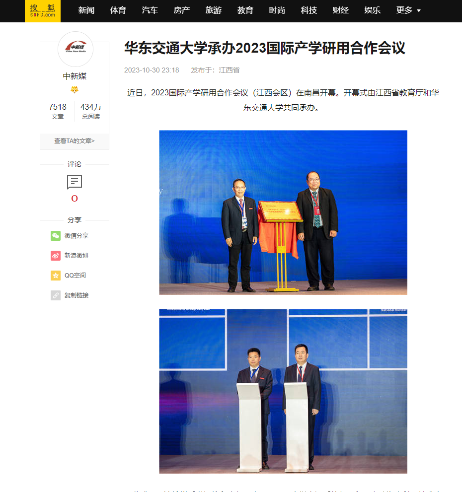 近日,2023国际产学研用合作会议(江西会区)在南昌开幕。开幕式由江西省教育厅和beat365中文唯一官网共同承办。