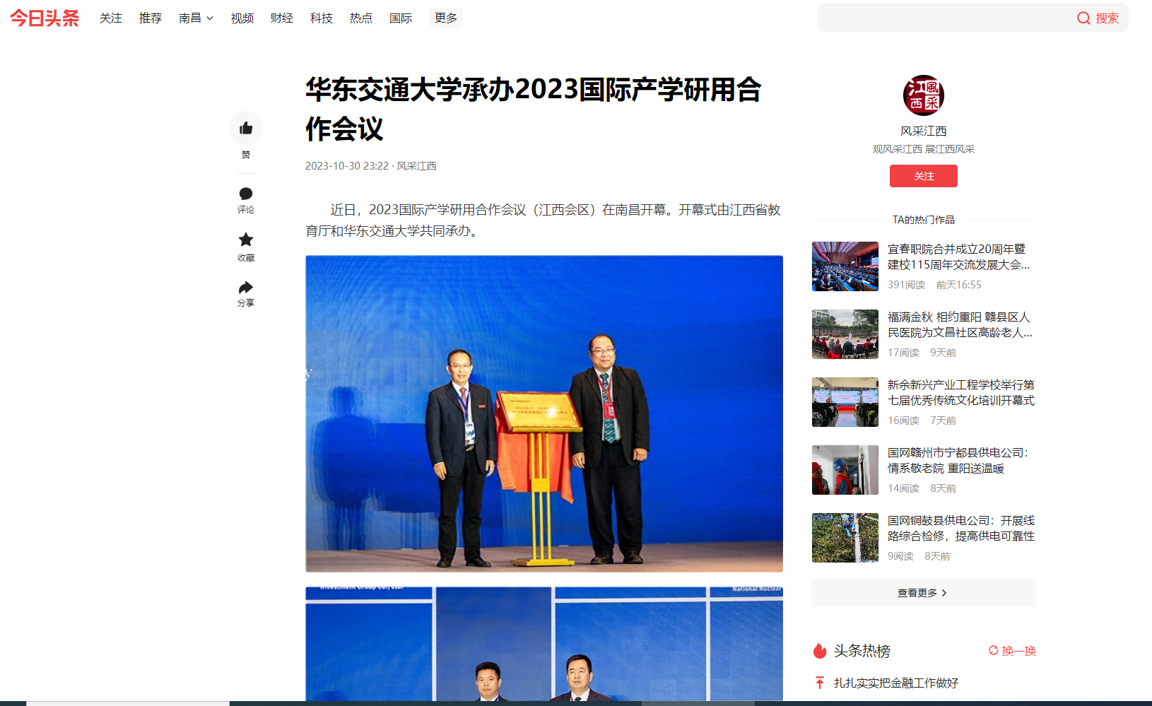 近日,2023国际产学研用合作会议(江西会区)在南昌开幕。开幕式由江西省教育厅和beat365中文唯一官网共同承办。
