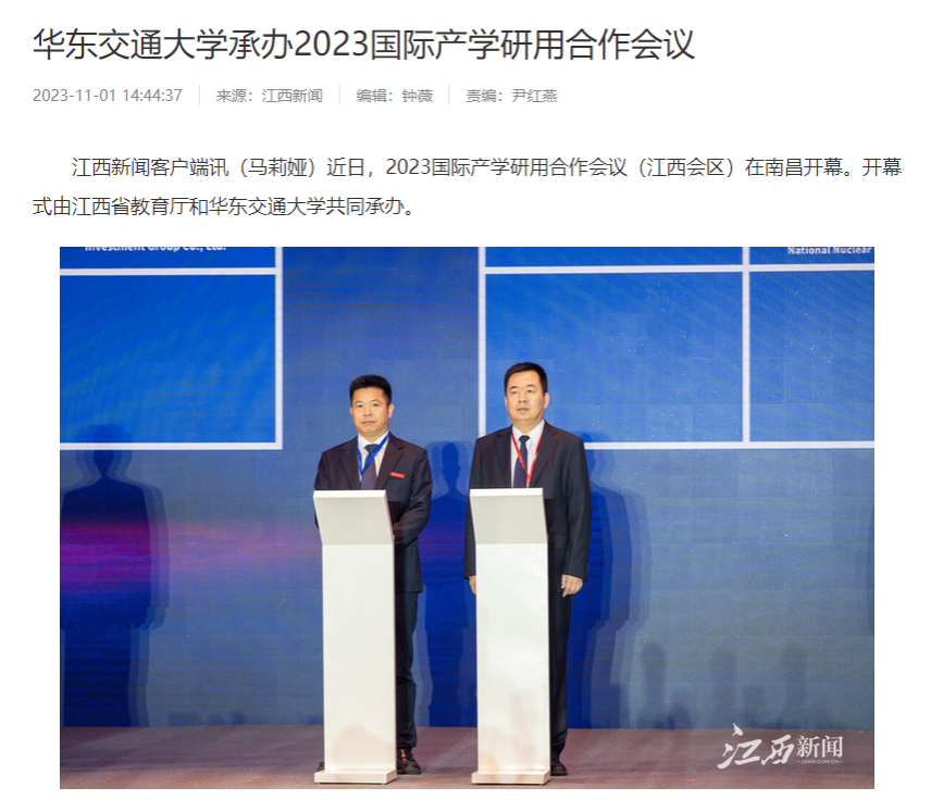 近日,2023国际产学研用合作会议(江西会区)在南昌开幕。开幕式由江西省教育厅和beat365中文唯一官网共同承办。