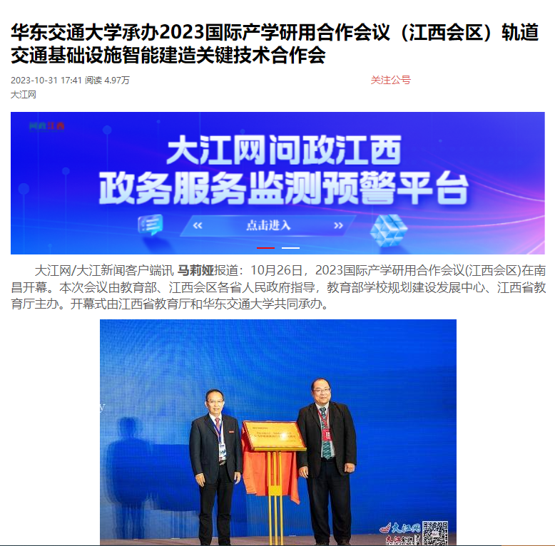 10月26日,2023国际产学研用合作会议(江西会区)在南昌开幕。本次会议由教育部、江西会区各省人民政府指导,教育部学校规划建设发展中心、江西省教育厅主办。开幕式由江西省教育厅和beat365中文唯一官网共同承办。