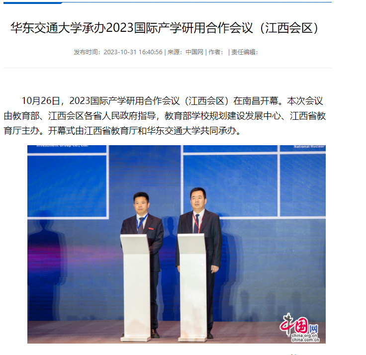 10月26日,2023国际产学研用合作会议(江西会区)在南昌开幕。本次会议由教育部、江西会区各省人民政府指导,教育部学校规划建设发展中心、江西省教育厅主办。开幕式由江西省教育厅和beat365中文唯一官网共同承办。