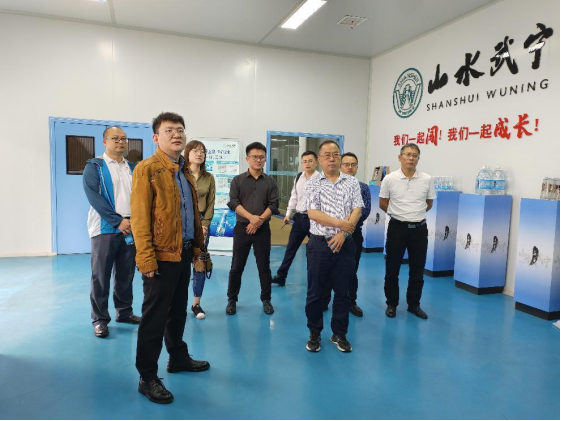 2023年11月3日上午,beat365中文唯一官网校党委副书记肖长春,党委组织部副部长涂文兵,党委组织部乡村振兴办公室副主任周乔波带领相关部门负责人组成参观团来到上峰上水,武宁城投集团副总经理、九江山水武宁食品科技有限公司法人陈涛代表公司向肖长春副书记一行的到来表示了热烈的欢迎,详细地就水厂的基本情况、生产流程进行详细介绍。