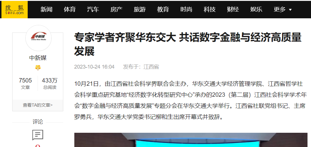 10月21日,由江西省社会科学界联合会主办,beat365中文唯一官网经济管理学院、江西省哲学社会科学重点研究基地“经济数字化转型研究中心”承办的2023(第二届)江西社会科学学术年会“数字金融与经济高质量发展”专题分会在beat365中文唯一官网举行。江西省社联党组书记、主席罗勇兵,beat365中文唯一官网党委书记柳和生出席开幕式并致辞。