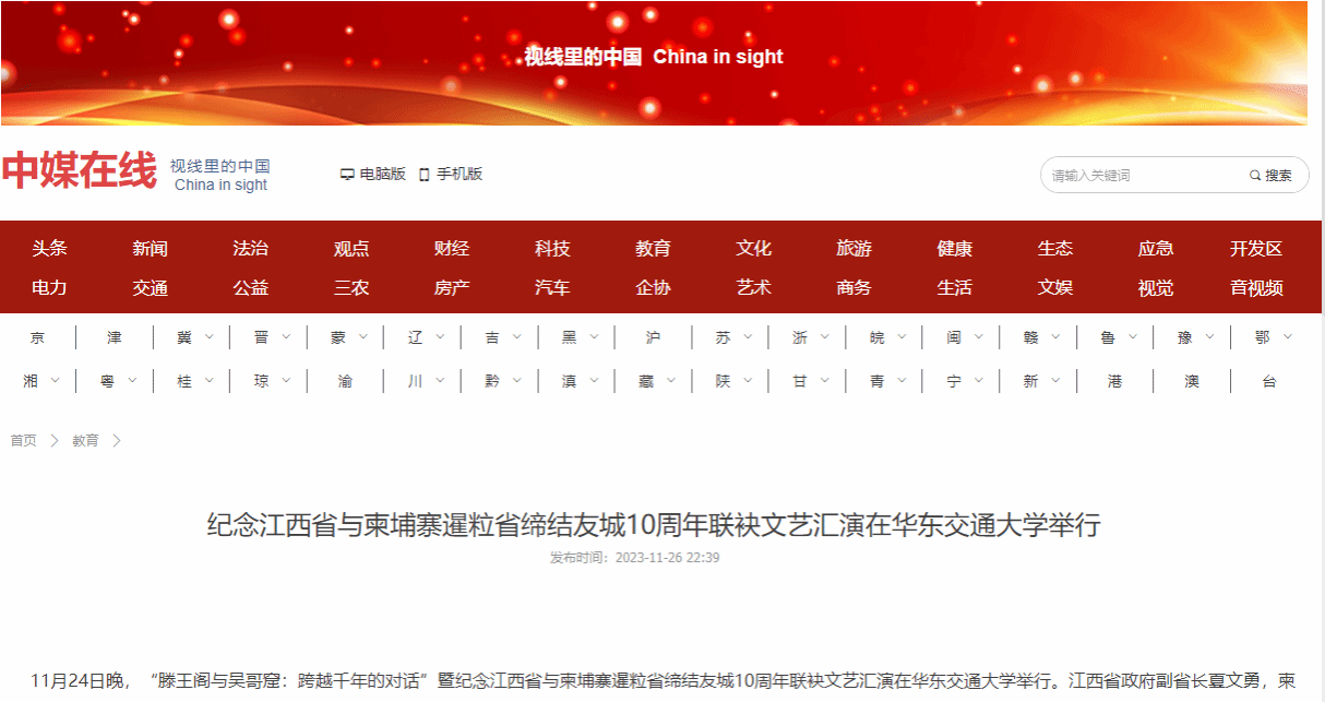 育索毗表示,此次文化交流活动是暹粒省和江西省之间兄弟般友谊的生动体现。江西拥有滕王阁,暹粒有吴哥窟,双方在保护文化遗产以及促进文旅合作方面有着巨大的潜力。期待未来两省友好关系更进一步、合作更加密切。