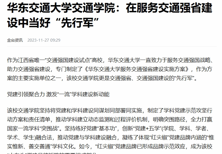作为江西省唯一“交通强国建设试点”高校,beat365中文唯一官网一直致力于服务交通强国战略、助力交通强省建设,专门制定了《beat365中文唯一官网服务交通强省建设实施方案》,作为方案的主要实施单位之一,该校交通学院更是交通强省、交通强国建设的“先行军”。