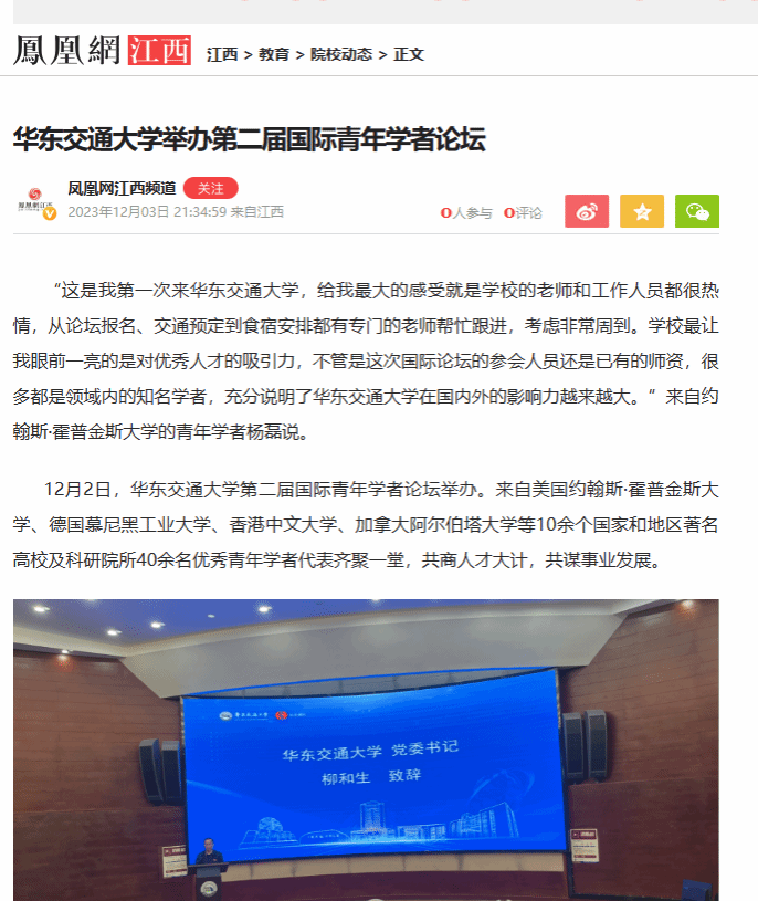 “近年来,学校想了很多办法,制定了很多政策,来引进各方面的人才。我们开展国际青年学者论坛,根本目的就是希望通过搭建平台,让大家了解华东交大,熟悉江西的人才政策,让他们乐意来江西、来华东交大工作。”该校党委副书记肖长春说。