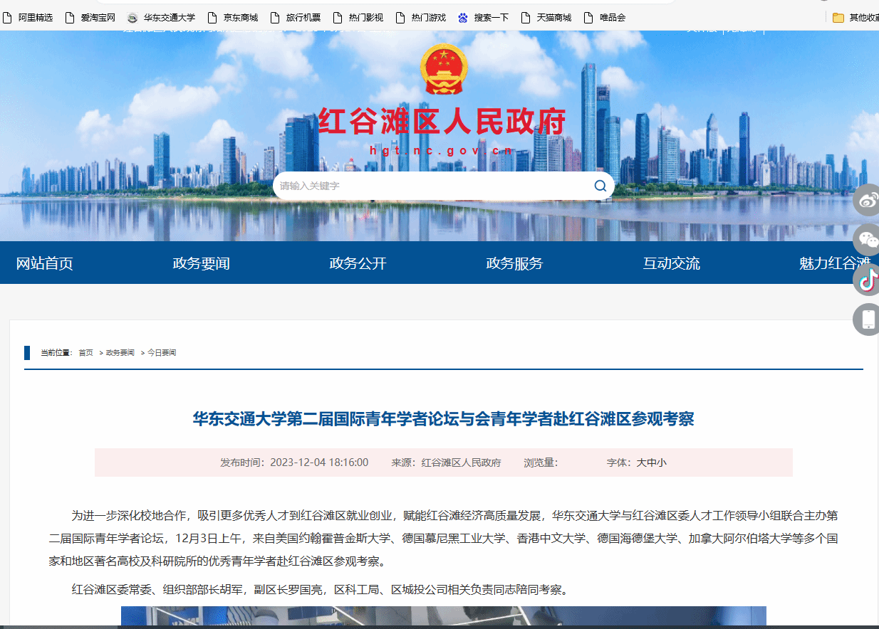 网址链接:beat365中文唯一官网第二届国际青年学者论坛与会青年学者赴红谷滩区参观考察 - 红谷滩区人民政府 (nc.gov.cn)