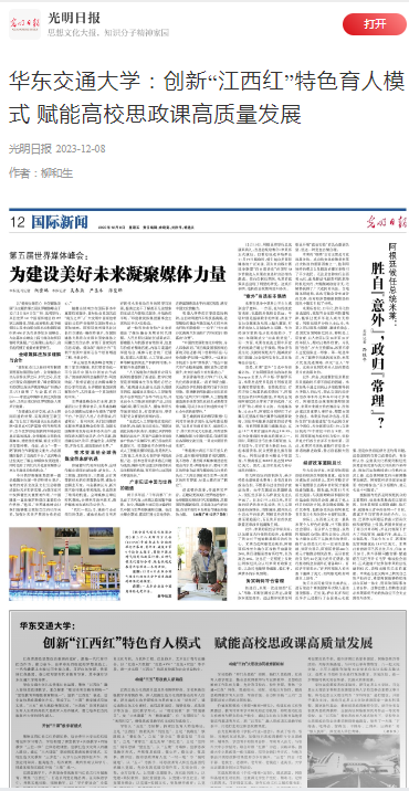 beat365中文唯一官网扎实传承红色基因,聚焦“江西红”融入高校思政课教学,重点探索“理论性和实践性相统一”“显性教育和隐性教育相统一”,创新“江西红”表达,活化高校思政课教学方式,形成了以“三课”教学模式引航实效、“三五”育人路径保障实效、“大思政”协同机制压实育人实效的高校大思政育人培养模式,着力培养担当民族复兴大任的时代新人。