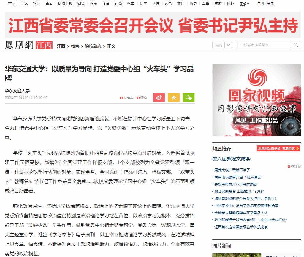 学校“火车头”党建品牌被列为首批江西省高校党建品牌重点打造对象,入选省首批党建工作示范高校,新增2个全国党建工作样板支部,1个支部被列为全省党建引领“双一流”建设示范攻坚行动创建对象;实现全省、全国党建工作标杆院系、样板支部、“双带头人”教师党支部书记工作室荣誉全覆盖……该校党委理论学习中心组“火车头”的示范引领成效日渐显著。
