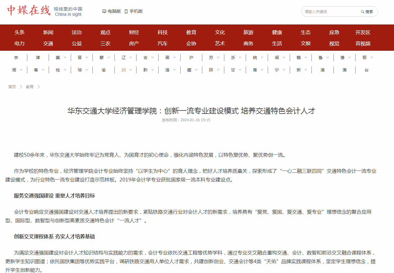 会计专业响应交通强国建设对交通人才培养提出的新要求,紧贴铁路交通行业对会计人才的新需求,培养具有“爱党、爱国、爱交通、爱专业”理想信念的复合应用型、国际型、数智型与创新型高素质交通特色会计“一流人才”。