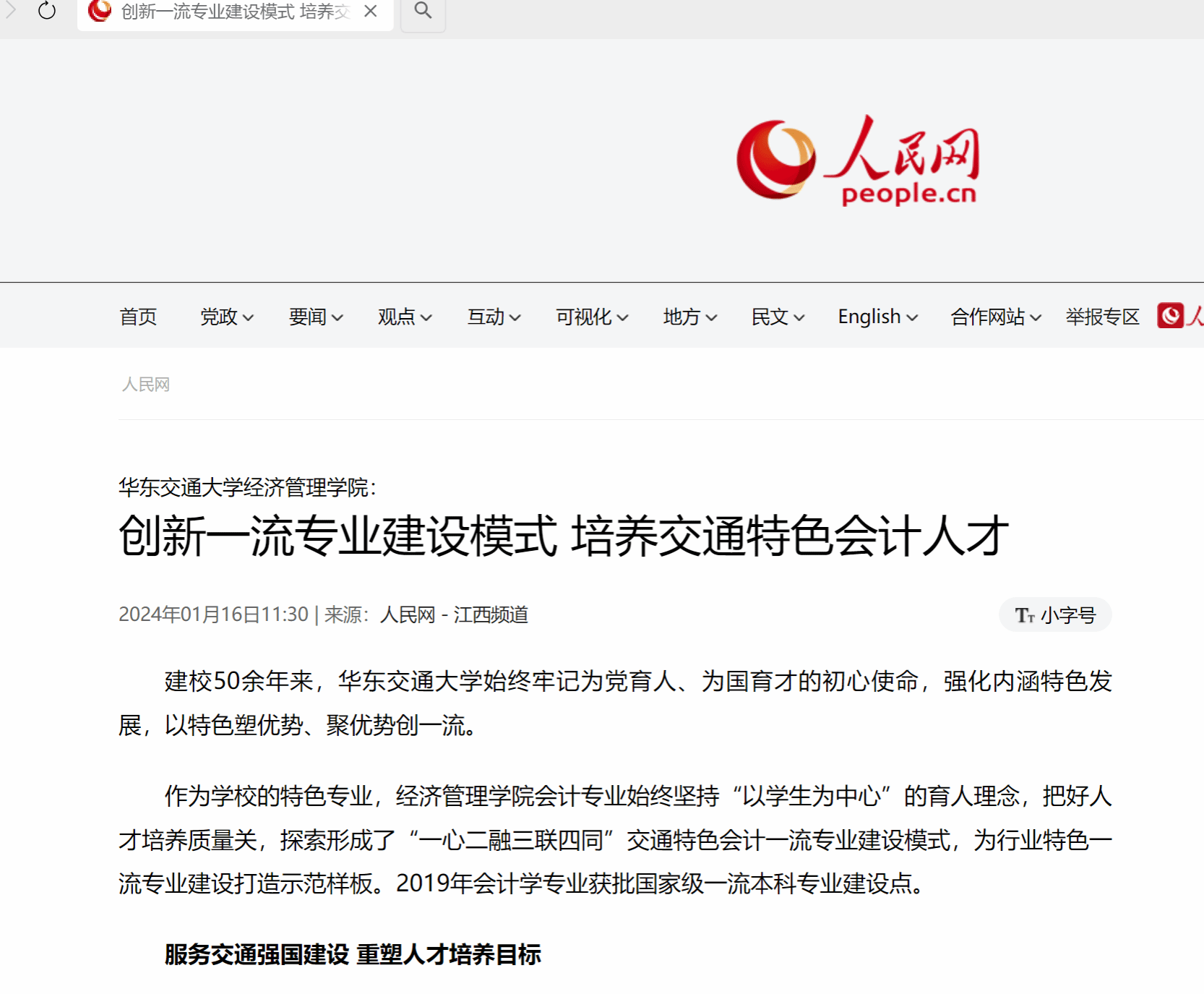 作为学校的特色专业,经济管理学院会计专业始终坚持“以学生为中心”的育人理念,把好人才培养质量关,探索形成了“一心二融三联四同”交通特色会计一流专业建设模式,为行业特色一流专业建设打造示范样板。2019年会计学专业获批国家级一流本科专业建设点。